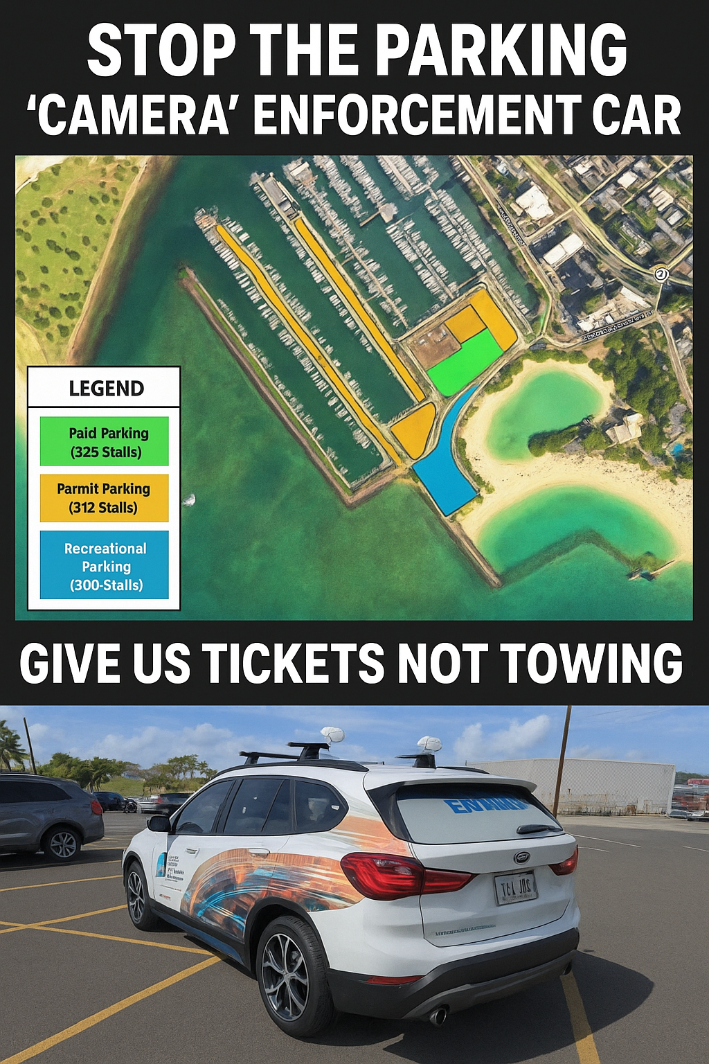 Surfparking works to protect fair public access to Hawaiʻi’s coastal areas by preserving free parking for residents, preventing the privatization of public recreational harbors, and promoting balanced parking enforcement that prioritizes citations and compliance before vehicle towing. We support policies that keep Hawaiʻi’s beaches, parks, and harbors accessible to the public.